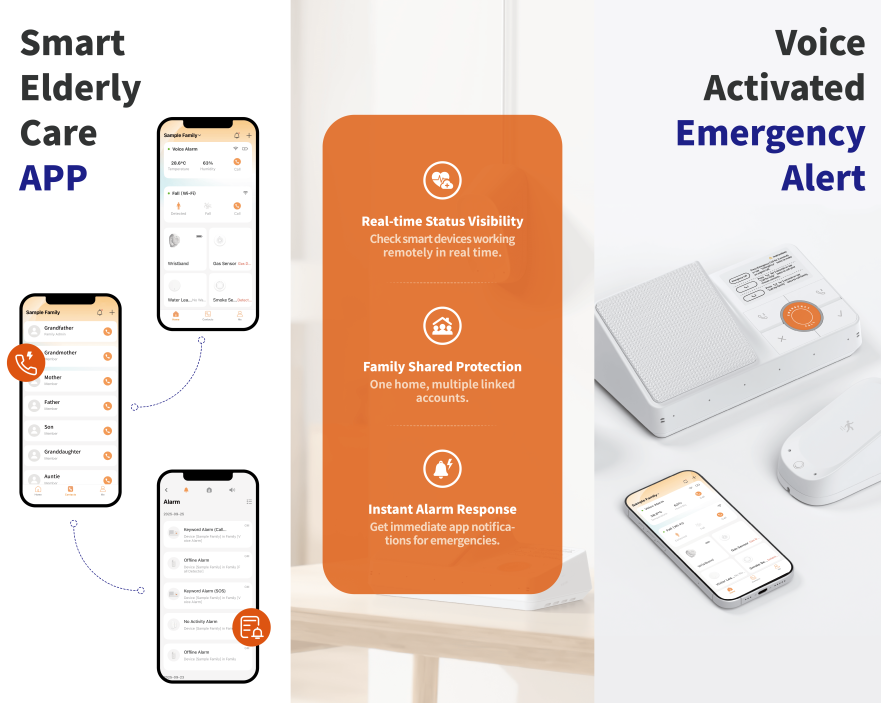 语音报警器:危急时刻秒级推送警报,双向对讲功能确保长者与救援人员实时沟通,构建“险情识别-快速响应-及时救援”完整闭环;